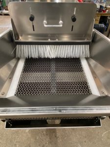 Cela offre un nettoyage optimum aux huîtres en vrac ou bien en poches. De plus, un balai vient frotter les coquillages juste avant le lavage pour enlever un maximum de saleté.